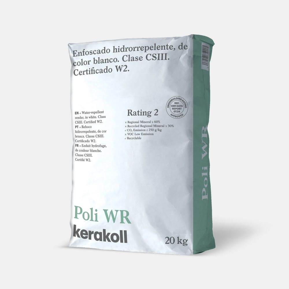 Poli WR es idóneo para la realización de enfoscados hidrorrepelentes de grano fino. Aplicable sobre soportes absorbentes. Producto con acabado fino y de elevada estabilidad dimensional. Interiores y exteriores. Blanco.