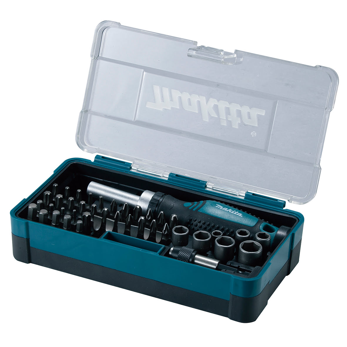 MAKITA SET PUNTAS Y VASOS CON PORTAPUNTAS MAGNETICO Y ATORNILLADOR DE CARRACA (47PCS)