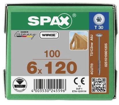 20%SPAX TORNILLO CABEZA CON ARANDELA ROSCA PARCIAL HI.FORCE WIROX 6×120 CAJA 100pzs