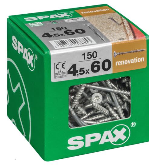 10%SPAX TORNILLO RENOVACION CABEZA PLANA ROSCA DE FIJACION TORX WIROX 4,5×60 CAJA 150pzs XXL