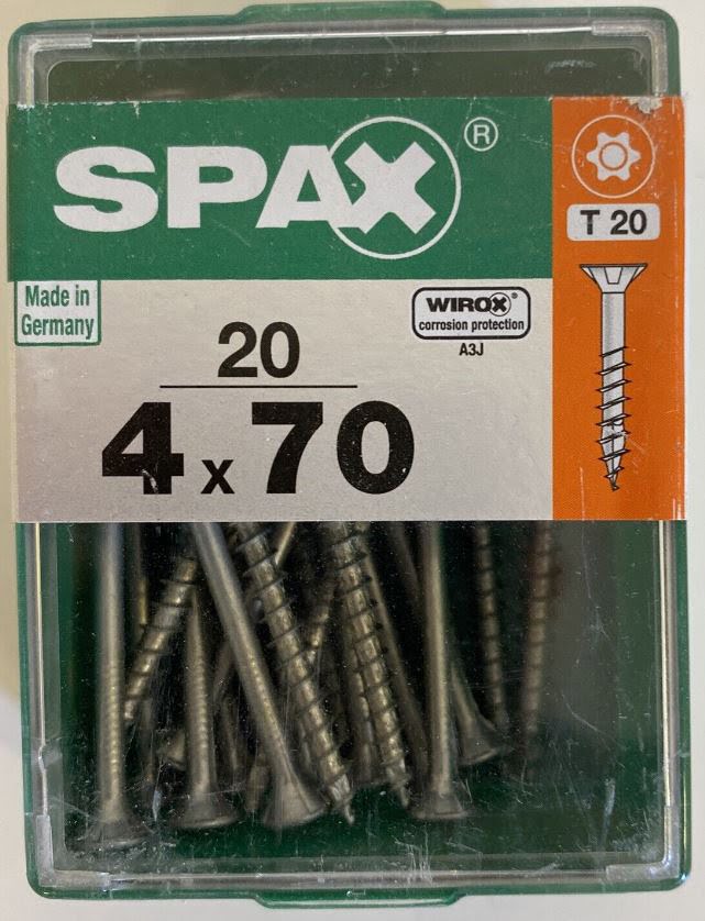 10%SPAX TORNILLO UNIVERSAL CABEZA PLANA TORX WIROX 4×70 CAJA 20pzs