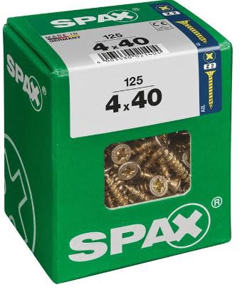 10%SPAX TORNILLO UNIVERSAL CABEZA PLANA YELLOX 4×40 CAJA 125pzs